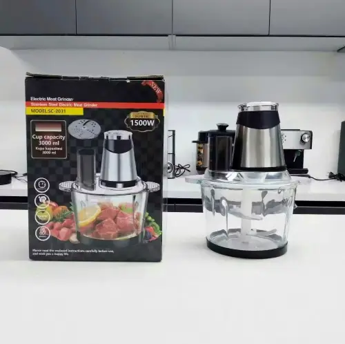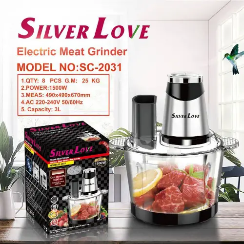محضرة طعام ماركة SILVER LOVE ❤️ موديل SC-2031 متعددة الاستخدامات 😍 فرامة بصل ولحمة + براشة خضار 2 بـ 1 🤗 هيكل ستانلس ضد الصدأ والكسر 😎 استطاعة المحرك 1500 واط 💪 وعاء زجاج بيوسع 3 ليتر 👌 4 شفرات حادة من الستانلس ستيل ✌️ لفرم مختلف أنواع الخضار واللحوم 🔪 مع قرص براشة لتقطيع الخضار والفواكه 😋 وإعطاء شكل مناسب لتزيين الأطباق 🌸 توصيل ضمن الشام وشحن للمحافظات 🚌