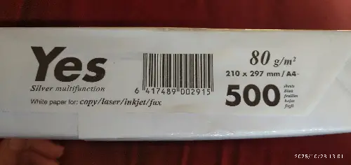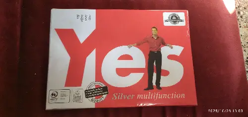 المنتج الموضح في الصورة هو علبة ورق طابعة ماركة "Yes" من نوع "Silver multifunction". يتميز هذا الورق بسطح أملس ودرجة بياض عالية. مصمم لتقديم نتائج طباعة ممتازة. مناسب للاستخدام في آلات التصوير، طابعات الليزر، طابعات الحبر النفاث (إنك جيت)، والفاكس . الحجم: A4 (21x29.7 سم) الوزن: 80 جرام عدد الأوراق: 500 ورقة