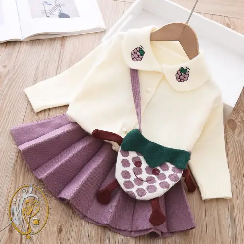 طقم بناتي *تريكو اجنبي مكفول مستورد نوع اول* *2* / *4* / *6* / *8* *الالوان موضحه بالصورة* *مع كل طقم شنتايه هديه* 😍 السعر 200000توصيل بالشام وشحن للمحافظات* *ياجبار يارب ياكريم*