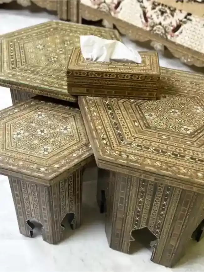ثلاثيتين وست مفارد وطقم طاولات تنتين كبار وتنتين صغار
