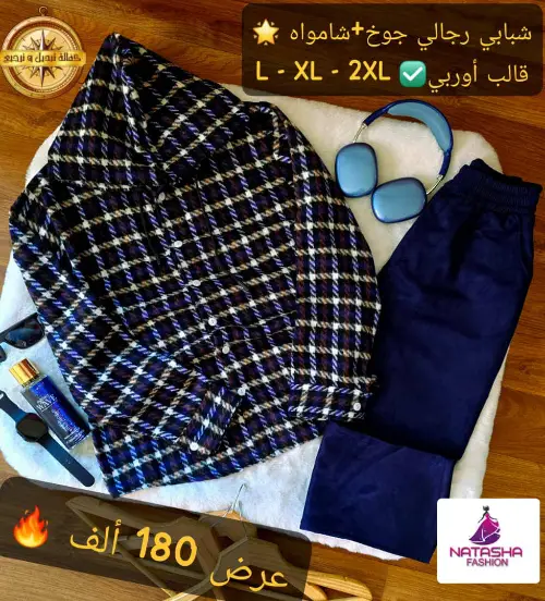من NATASHA FASHION 👑 السعر المبيع 180 ألف 🔥 طقم طلعة قميص كاروهات أزرار وطاقية دمج مع شواط طاقية مع بنطال سبور شيك سوبر أناقة شبابي رجالي ناااررر 🔥🔥🔥 *القماش:* قميص جوخ كاروهات + بنطال شامواه قماش أجنبي مستورد تقيل جداً ممتاز بكفالة 🧭✔️ *ألوان عدد:* بالصور والصور واقع ✔️ *قياسات:* L - XL - XXL *قالب أوربي صحيح 100% ✅* *السعر المبيع:* 180 ألف 🔥 توصيل (دمشق _ ريف دمشق) شحن باقي المحافظات توصيل وشحن فوري 🌪️