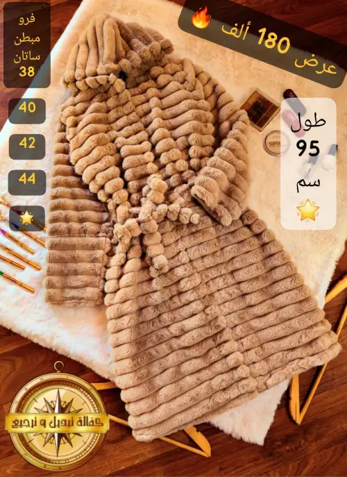 السعر 180 ألف 🔥 طول الجاكيت 95 سم 🛑 جاكيت شتوي تقيل جداً للصبايا والسيدات قمة بالأناقة والجمال 😍 *القماش:* فرو سميك وناعم مبطن ساتان تقيل جداً قماش أجنبي *مستورد* ممتاز بكفالة🧭✔️ *ألوان عدد:* بالصور والصور واقع ✔️ *قياسات:* ستاندر 38 - 40 - 42 - 44 🌺 *السعر :* 180 ألف 🔥 🔥 توصيل (دمشق _ ريف دمشق) شحن باقي المحافظات توصيل وشحن فوري 🌪️