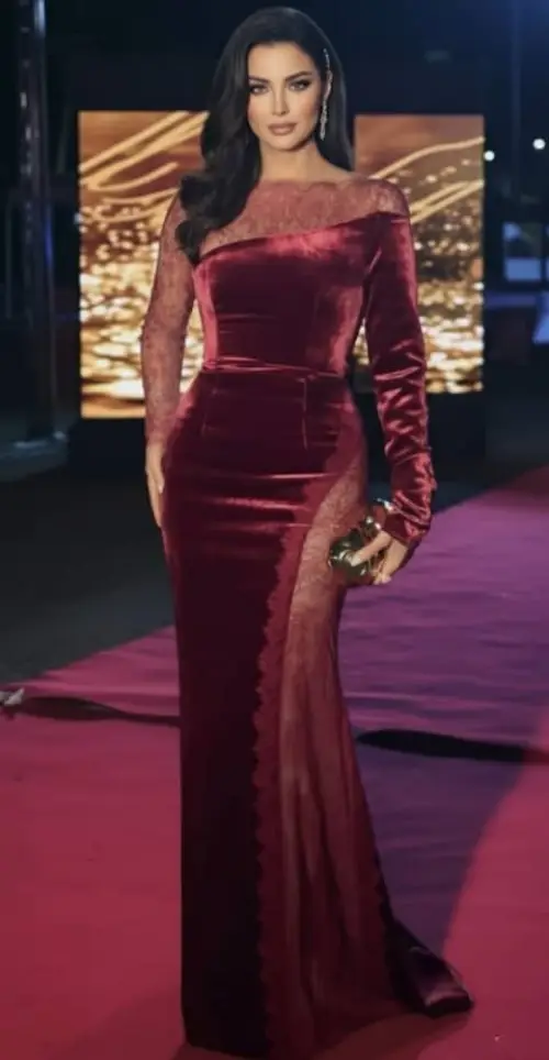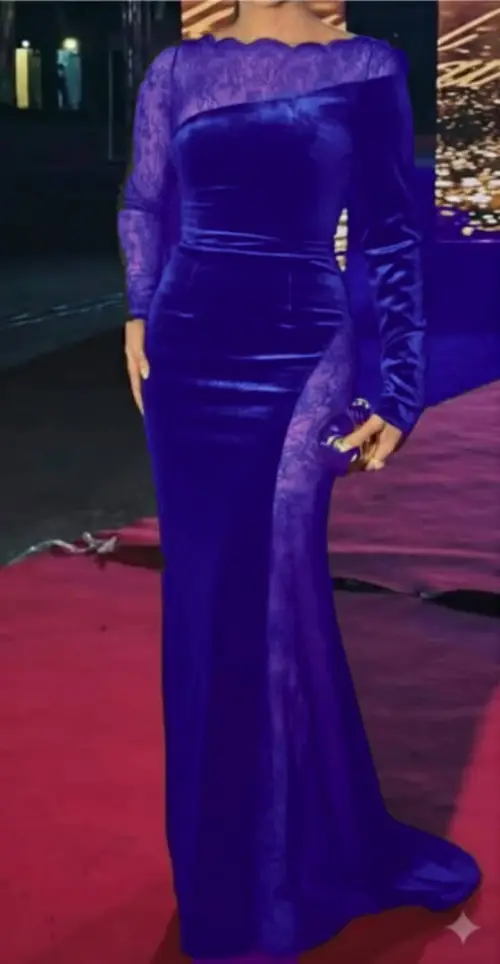 فستان مخمل + دانتيل فرنسي ٣٨/ ٤٠/ ٤٢/ ٤٤/ ٤٦/ ٤٨/ خمري/ اسود/ نيلي/ زيتي/ السعر 295 توصيل بحلب وشحن محافظات