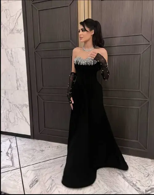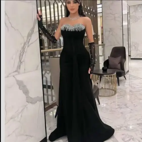 🔥 *الجديد المميز*🔥 الليدي لما تختار بعناية ما الها الا ستايلاتنا المميزة 😉😍 فستان سهرة قماش دبل سكوبا مكلف حجر الماس مع كمام شيفون مكلف لولو 👑 القياسات : 1 " 2 بلبس من 38 لل44 عدد الألوان : اسود 🖤 السعر : 340.000 *جملة&مفرق* *مبااااشر* حلب توصيل وشحن