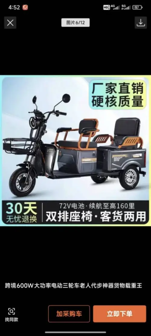 هذه دراجة ثلاثية العجلات كهربائية صينية الصنع (علامة تجارية Jianshe)، مزودة بمحرك كهربائي من النحاس النقي بقوة 800 وات وخمس بطاريات Chaowei 60 فولت 20 أمبير في الساعة، مما يوفر مدى يبلغ حوالي 70 كيلومترًا. هذا المنتج ليس ارقام تجارية بل هو ارقام فعلية وجودة غير المنتجات الموجودة في الاسواق مع ضمانة وجودة حقيقية