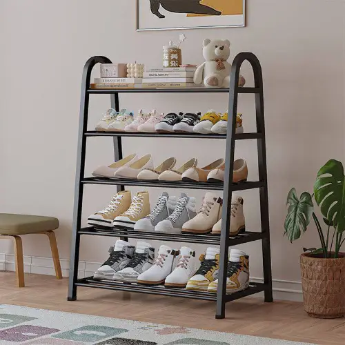 ستاند أحذية 5 طبقات🎀😍مصنوعًا من البلاستيك والأنابيب المعدنية.😍مصمم لتخزين وتنظيم الأحذية في أماكن مثل المداخل أو الخزائن أو غرف النوم.خفيف الوزن يسهل تجميعه وتركيبه🎀السعة: يمكنه استيعاب ما يصل إلى 15 زوجًا من الأحذية تقريبًا. 🎈المقاسات:(79 × 55 × 27,5)سممتوفر باللون الأسود😍 توصيل ضمن دمشق وريفها وشحن للمحافظات🎀 السعر 150000