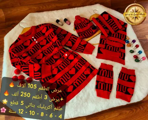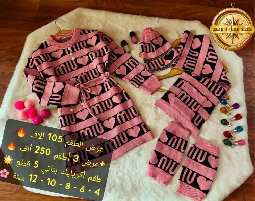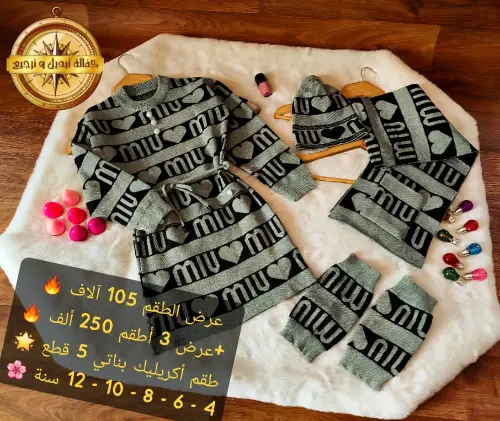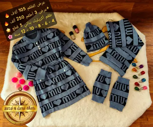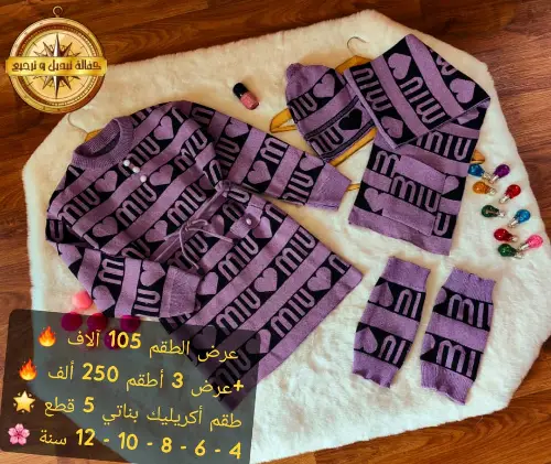 105 آلاف للطقم الواحد 🔥 250 ألف لل3 أطقم 🔥 *عالزبون/ة اختيار القطعتين والثالثة تحديد المقاس فقط وتحديدها علينا 🛑* طقم فستان شتوي بناتي 5 قطع موديل ولا ألذ 😍 *القماش:* خيط أكريليك أجنبي *مستورد* ممتاز بكفالة🧭✔️ *قياسات:* 4 - 6 - 8 - 10 - 12 سنة 🌟