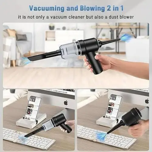 فرد مكنسة محمول ماركة JAMAKY 🇮🇹 يعمل على الشحن ❤️ للسيارة و الاستعمالات المنزلية الخفيفة 🤗 يمكن الاستفادة منه بالشفط و النفخ معاً 😍 سهل الحمل لأي مكان ، خفيف وزنه 290g☝️ قوة شفط عالية باستطاعة 30W 😎 فلتر داخلي قابل للفك و التنظيف 💦 بطارية ليثيوم داخلية 2000mAh 🔋 معه ملحقات متعددة الاستخدامات 👌 1⃣ رأس فرشاة لتنظيف الحواف 2⃣ رأس ضيق للزوايا و الأماكن الصعبة 3⃣ رأس مدور مخصص لأكياس التخزين.. 4⃣ رأس رفيع جداً مخصص لدواليب السباحة والكرات.. ‼️ ملاحظة ‼️ يمكن الاستفادة من آخر ملحقين بطريقتين 😍 • للشفط : بالتركيب على الفتحة الأمامية للفرد • للنفخ : بالتركيب على الفتحة الخلفية للفرد توصيل ضمن الشام و شحن للمحافظات 🚌