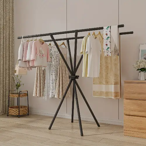 ستاند لتعليق الملابس ومنشر 2 بـ 1 😍 يساعد على التنظيم واستغلال المساحات ✅ أعمدة من المعدن المبخوخ حرارياً 😎 سهل الفك والتركيب بدون أي معدات 💯 الأبعاد { الطول 140 - الارتفاع 130 } سم 🎗 متوفر بلونين { أبيض - أسود } ❤️ توصيل ضمن الشام وشحن للمحافظات 🚌