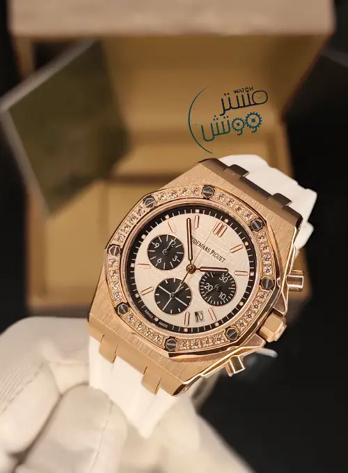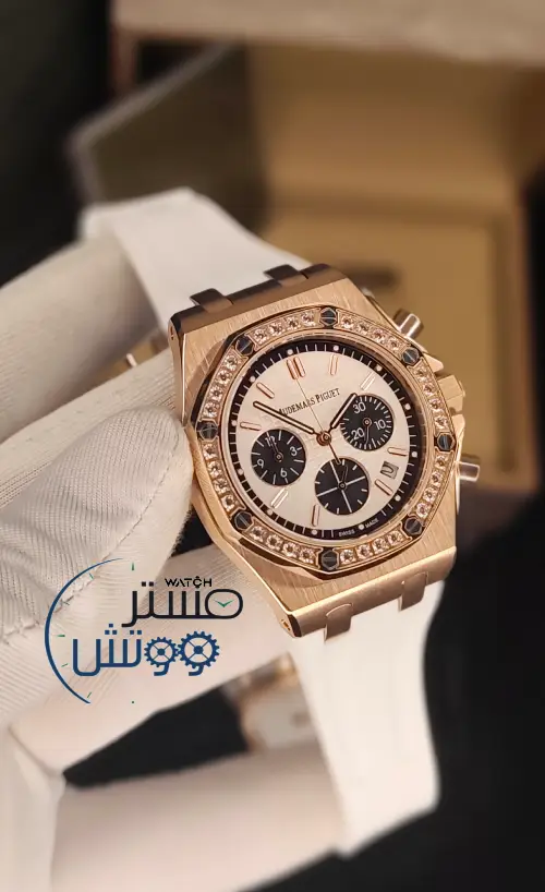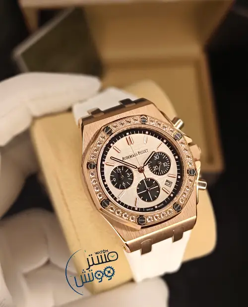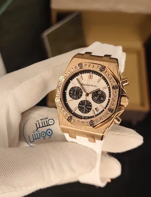 لأنكِ إستثنائية لا تقبلي بأن تزيني أناملكي بأقل من ساعة: اوديمار بياجيه🌸 for lady المرصعة بأحجار من الزيركون الاخاذ 💎💎 والمطلية بالذهب الوردي و التي ستجعلكي مثال للأناقة لكل من حولكي ⏱كوبي 1 A.A.A ⚙️ماكينة كوارتز كرونوغراف مايوتا يابانية الصنع فائقة الدقة مع عداد للشهر وعداد رياضي وعداد لنظام 24 💎عدسة من زفير الكريستال المقاوم للخدش بإطار مرصع بأحجار من الزيركون الاخاذ💎💎 وكستك من الرابر الفاخر بختم AP على الكستك والقفل 📐مطابقة لابعاد ووزن واختام الاورجينال 🥇متوفرة الان ▪️كفالة لمدة سنة ▪️ مرفقة بالعلبة و الملحقات الاساسية للطلب والاستفسار اتصال او واتساب:0988644509