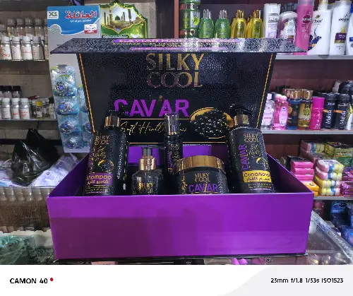 "Silky Cool Caviar" مجموعة من منتجات العناية بالشعر التي تحتوي على الكافيار. يحتوي على فيتامينات وأحماض أوميغا 3 الدهنية وبروتينات لتغذية الشعر. يعمل على ترطيب الشعر بعمق ويمنع الجفاف والهشاشة. يساعد على تقوية الشعر ويقلل من التقصف. يضيف لمعاناً طبيعياً للشعر ويحميه من الأضرار البيئية. شامبو كافيار بلسم كافيار حبيبات مستخلص الكافيار سيروم الشعر كافيار ماسك الشعر