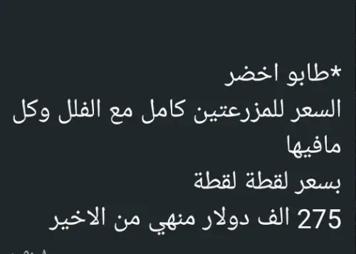 لحق حالك ...لمحبي للمناطق الهادئة والمميزة ....بسعر خرااافي فوق الوصف ......مزارع وفلل ....بالسعر الخرافي ...لحق حالك واغتنم الفرصة ...مرو........9/11...للراغب فقط ...نعتذر من الوسطاء والمكاتب ...شكرااا للجمييع ...تحياتي ...