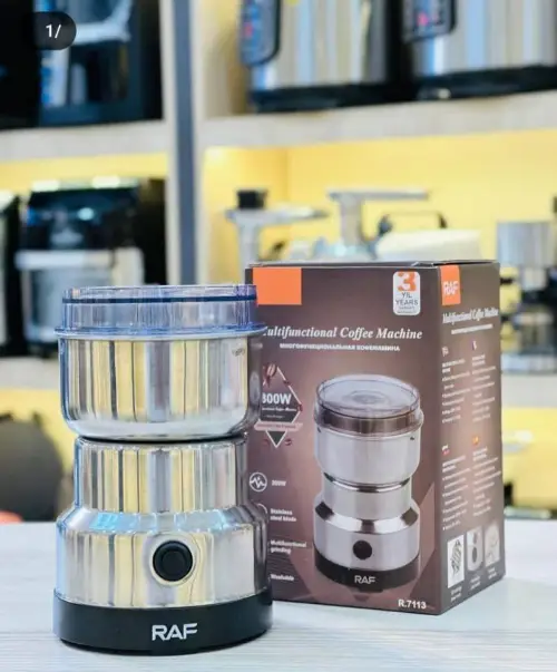 ☕ مطحنة قهوة متعددة الوظائف من RAF 🌟 💪 300 واط - طحن سريع ومثالي 🔧 تصميم فولاذي مقاوم للتآكل 🧼 أجزاء قابلة للغسل - سهل التنظيف ⏰ ضمان لمدة 3 سنوات ✨ تجربة استثنائية لقهوةك! 🛒 احجز الآن واستمتع بقهوة مثالية!