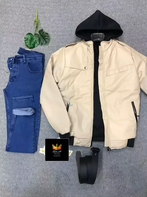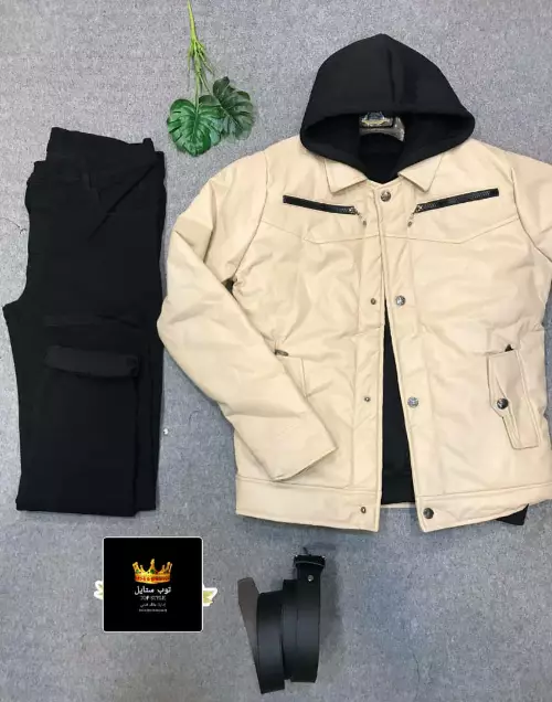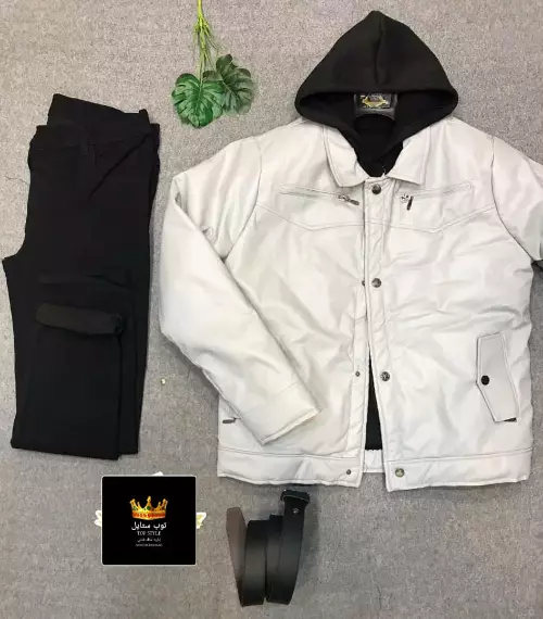 1.جاكيت جلد نفخ تقييل بطانة فرو محشي ديكرون من داخل قطعه اورجنال