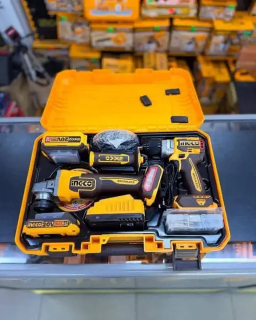 الشركة العالمية العملاقة INGCO CKLI20273 عرض 2 قطعة مثقب 66 نيوتن رجاج وجلخ115 m مع بطاريتن وشاحن، صناعي جلخ صغير 115مم متسارع على البطارية 1 عدد فولط 20 مثقب رجاج )CIDLI206681 )عدد 1 علبة اقراص 115مم )10 قطع( عدد 1 مجموعة اكسسوارات بطارية 2Ah عدد 1( FBLI20011) بطارية 1 عدد 4Ah شاحن بطارية عدد 1( FCLI2001) مجموعة بحقيبة حمل توصيل ضمن دمشق و شحن للمحافظات #الجميع