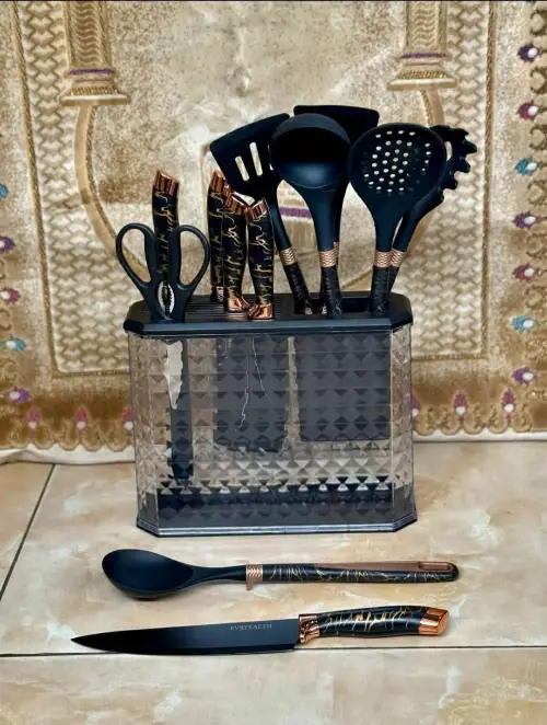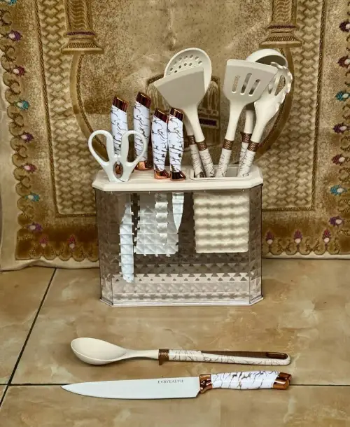 طقم سيليكون 12 قطعة ماربل 😍❤️ معالق سكب سيليكون لحماية الأواني 🤗 وسكاكين حادة مع مقص وكسارة جوز 😎 وقاعدة لتحطي كل شي بشكل مرتب ✅ متوفر بلونين { أبيض - أسود } ❤️ توصيل ضمن الشام وشحن للمحافظات 🚌