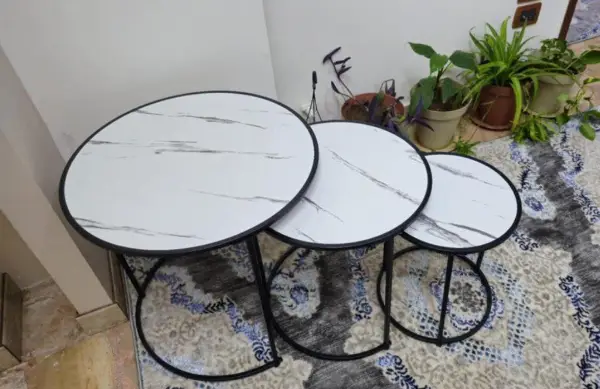 مجموعة 3 طاولات جانبية بمقاسات متنوعة أكبر طاولة: 18 إنش عرض × 24.5 إنش ارتفاع وسطى: 16 إنش عرض × 22.25 إنش ارتفاع أصغرها: 12 إنش عرض × 20 إنش ارتفاع مثالية لوضع الكتب، المشروبات، أو الديكور قاعدة منحنية متينة وعصرية تستخدم معًا أو بشكل منفصل حسب الحاجة متوفر ب الوان أبيض 🤍 رمادي توصيل ضمن الشام وشحن للمحافظات