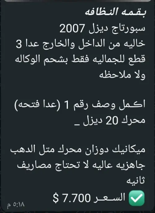 سبورتاج ...2007...خالية برا جوا ....محرك ودوزان ذهب .....جاهزية ممتازة ......لحق حالك واغتنم الفرصة .....عمر ...30/11...للراغب فقط ..نعتذر من الوسطاء والمكاتب ...عمولة من الشاري ...شكرااا للجمييع ......أ.عمران