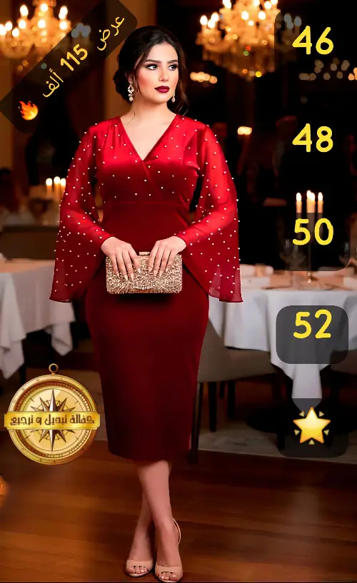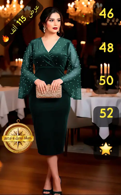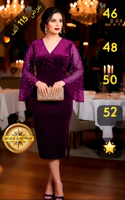 السعر المبيع 115 ألف 🔥 *طول الفستان 120 سم 🛑* فستان أنيق بأروع القصات تحلاية لولو مع أكمام شيفون للصبايا والسيدات قمة بالأناقة والجمال 😍 *القماش:* مخمل أسيتيكس + أكمام شيفون تقيل جداً قماش أجنبي *مستورد* ممتاز بكفالة🧭✔️ *ألوان عدد:* بالصور والصور واقع ✔️ *قياسات:* ستاندر 46 - 48 - 50 - 52 🌺 *السعر المبيع:* 115 ألف توصيل (دمشق _ ريف دمشق) شحن باقي المحافظات توصيل وشحن فوري🌪️