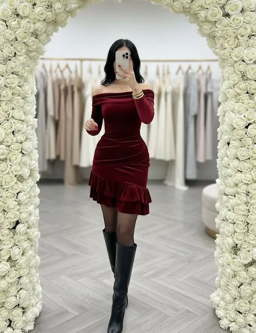 *تكراااار* 🔥 *جديدنااا من انتاجنا الحصري المميز*🔥 الجمال و الدلع والأناقة لكل صبية كيوت و بتحب تكون ليدي 😍 بنقدملك والموديل خصيصا الك😉 فستان قصير موديل كتف ساحل و طبقات من تحت قماش مخمل أجنبي ✨ قياسات: 1و2 بلبس من 38 ل 44 لون: خمري/اسود السعر:210.000 *تسليم مباشرررر* حلب توصيل وشحن 9