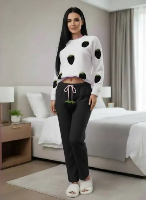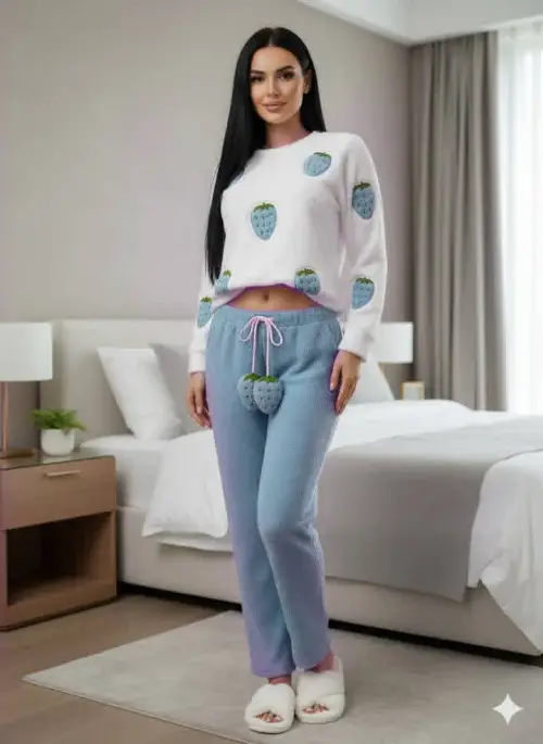 المنتج الحصري من عنا غير بجامه نسوووااني قطعتين فروو وجهين فراولة القياس فري ساايز الالوان موف💜 أسود🖤 فستقي💚 زهري🩷 توتي💜 أحمر🩷