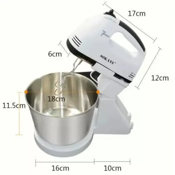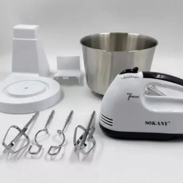 عجانة حوض SOKANY استطاعة المحرك 250 واط حوض متحرك بسعة 2 ليتر معها راسين للخفق٬ وراسين للعجن إمكانية التبديل بين 7 سرعات