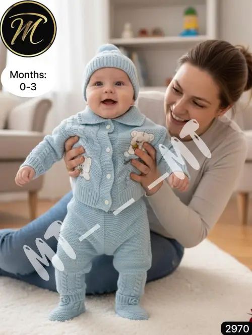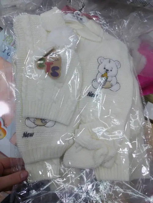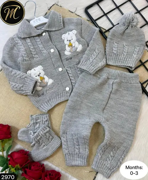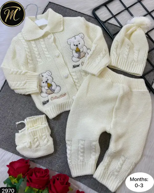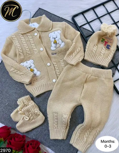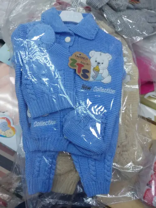 *⚜️بيجاما بيبي صوف⚜️* *⚜️مكون من 4 قطع⚜️* *⚜️مع طاقية وكلسات ⚜️* *⚜️معالج ضد الحساسية⚜️ فري سايز بلبس من ب ب ل ٦ شهور السعر 155000