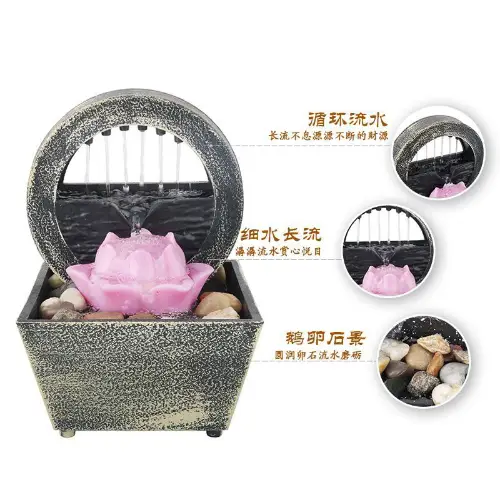 نافورة مياه صغيرة 💫شكل زهرة اللوتس. 💫تصميم مدمج مناسب للمنازل أو المكاتب أو غرف النوم.💫تعمل المياه المتدفقة على زيادة رطوبة الهواء في الأماكن المغلقة.💫تساعد الأضواء الناعمة في خلق جو رومانسي ومريح.💫تساهم في تنقية الهواء عن طريق تصفية الغبار والملوثات💫مزوده باحجار مميزة💫تعمل عن طريق مأخذ USB توصيل ضمن دمشق وشحن لكافة المحافظات 🚛 السعر 175000