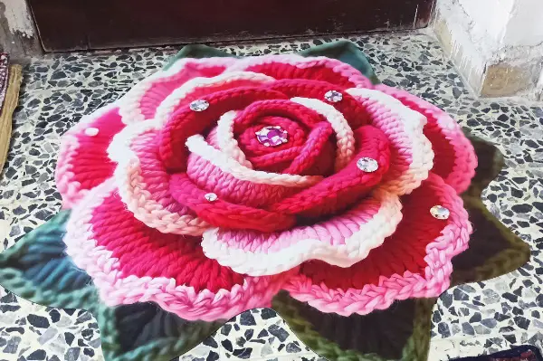 دعاسات ضد الانزلاق موديل وردة عملية سريعة الامتصاص للماء الأرضية مصنوعة من الكوشوك مع واجهة برسمات وألوان مميزة الأبعاد { الطول 80 - العرض 80 } سم