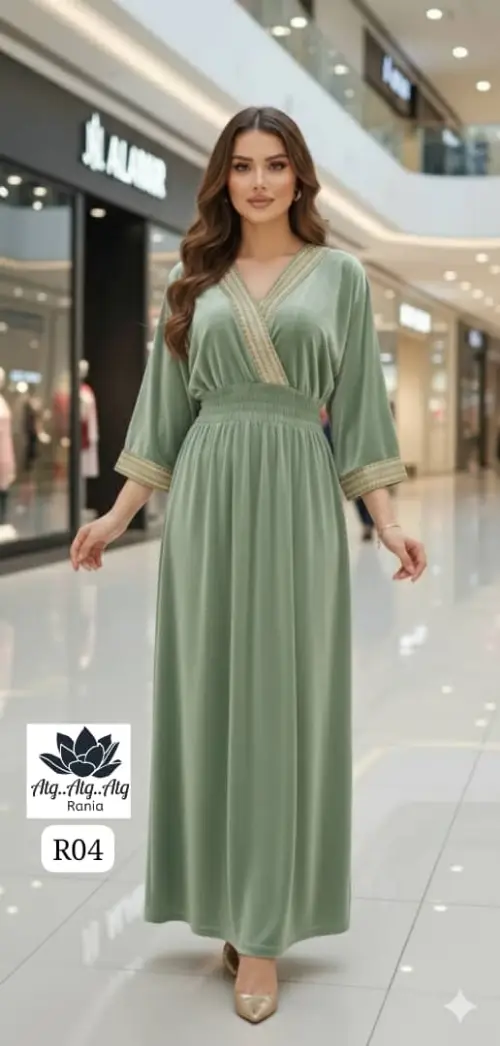 فستان مخمل مكلف على القبة والكمام فري سايز