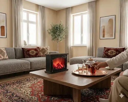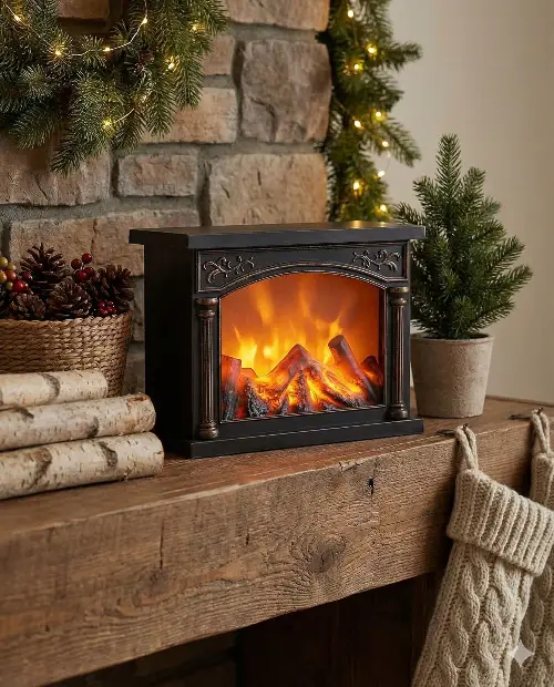 مجمر نار إلكتروني موديل طاولة 😍🔥 قطعة ديكور للأجواء الشتوية ❤️ يعمل بالوصل المباشر بأي مأخذ USB 🔌 أو باستخدام 3 بطاريات { غير مرفقة } 🔋 الأبعاد { الطول 27.5 - العرض 11.5 - الارتفاع 19.5 } سم 🎗 توصيل ضمن الشام وشحن للمحافظات 🚌