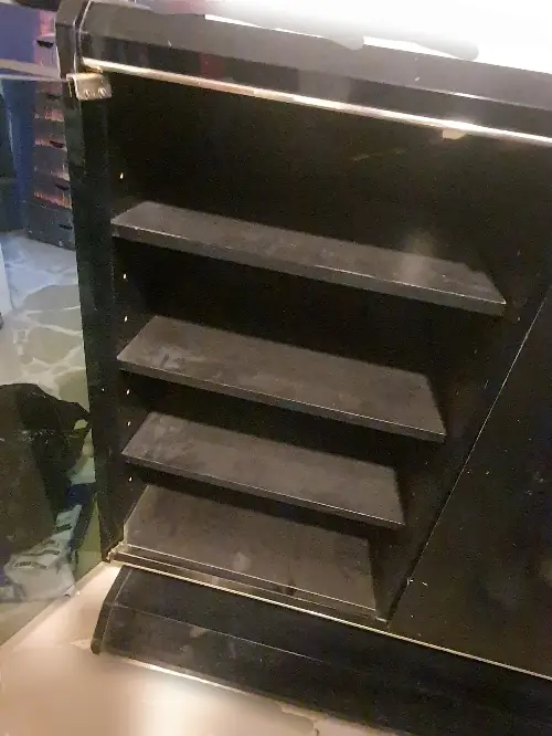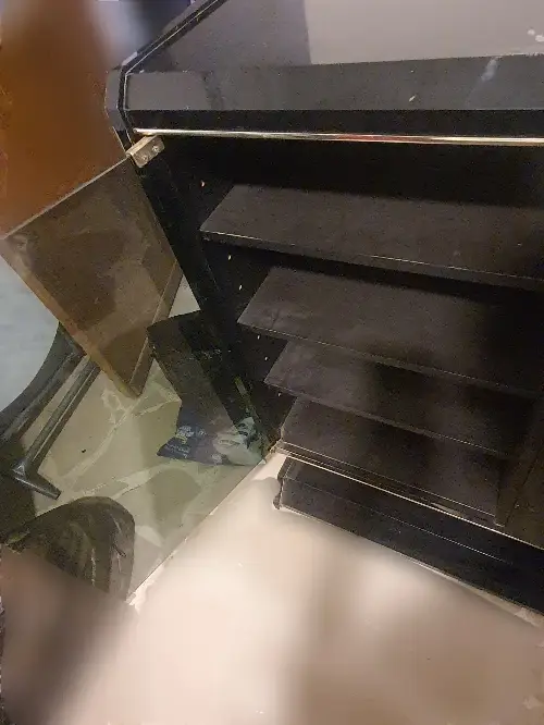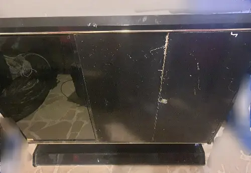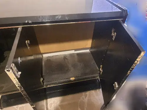 غرفة ضيوف لون كحلي مع طاولات مرمر