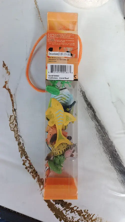 - قاعدة ديلوكس للشعاب المرجانية. مجموعة من 11 قطعة من مجسمات الكائنات البحرية الصغيرة وملحقات اللعب. أنبوب تخزين بلاستيكي قابل لإعادة الاستخدام لألعاب الحيوانات
