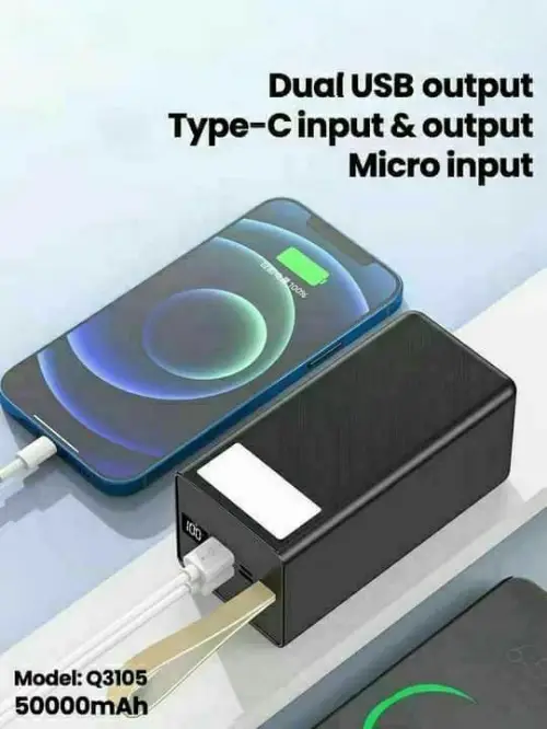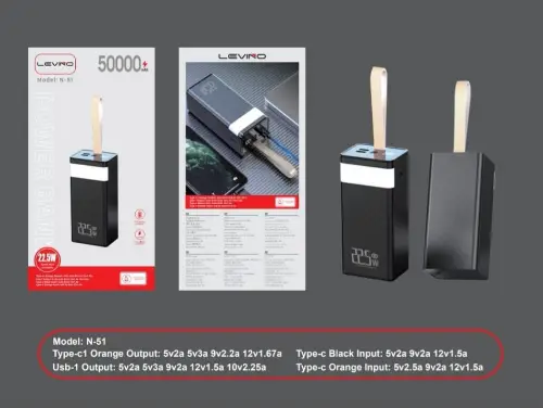 باور بانك إلك ولعيلتك ولجيرانك 😂👏 باور بانك LEVINO موديل N-51 😍 بطارية ليثيوم بسعة 50,000 mAh 🔋 يدعم الشحن السريع بقدرة 22.5W ⚡️ شاشة ديجيتال لعرض نسبة الشحن 💯 إضاءة ليد بيضاء عند الطوارئ 🤍 حمالة جلد لسهولة الحمل و الاستخدام 🤗 مدخلين شحن Micro - Type-C 🔌 مخرج شحن USB تخريج 2 أمبير 🔌 توصيل ضمن الشام وشحن للمحافظات 🚌