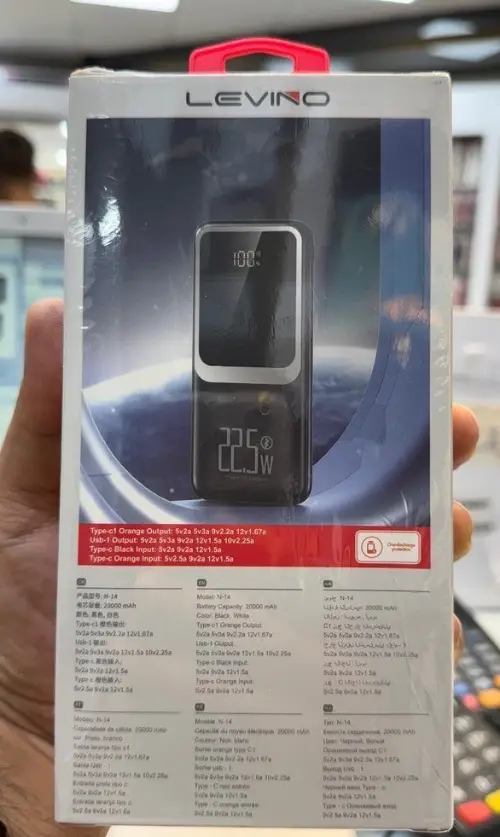 باور بانك LEVINO موديل N-14 😍 بطارية ليثيوم بسعة 20,000 mAh 🔋 يدعم الشحن السريع بقدرة 22.5W ⚡️ شاشة ديجيتال لعرض نسبة الشحن 💯 مدخلين شحن Micro - Type-C 🔌 مخرج شحن USB تخريج 2 أمبير 🔌 توصيل ضمن الشام وشحن للمحافظات 🚌