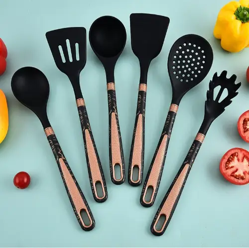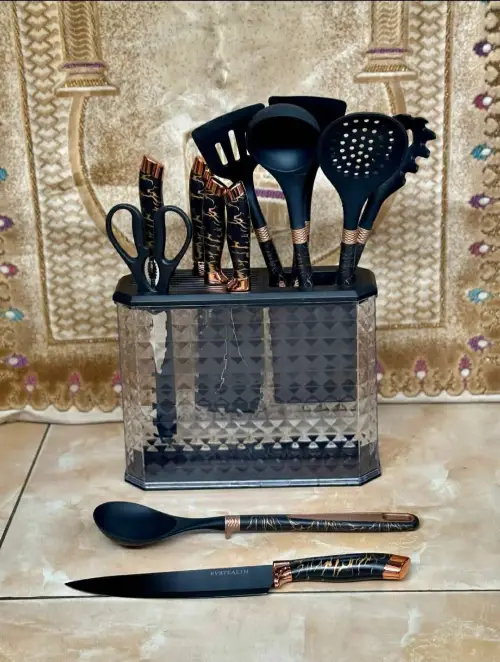 طقم سيليكون 12 قطعة ماربل 😍❤️ معالق سكب سيليكون لحماية الأواني 🤗 وسكاكين حادة مع مقص وكسارة جوز 😎 وقاعدة لتحطي كل شي بشكل مرتب ✅ متوفر باللون { الأبيض } ❤️ توصيل ضمن الشام وشحن للمحافظات 🚌