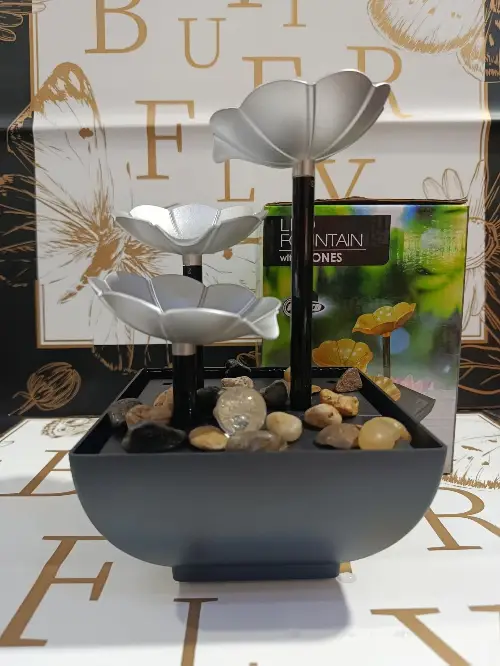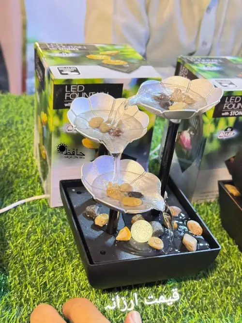 نافورة لتزيين الغرف والمكاتب 😍❤️على شكل 3 ورقات بألوان مميزة 🍃مع أحجار لزيادة جمالية المنظر 🪨وإضاءة LED رومانسية لطيفة 🥰تعمل بالوصل المباشر بأي مأخذ USB 🔌الأبعاد { الطول 14 - العرض 14 - الارتفاع 21.5 } سم 🎗متوفرة بلونين { برونز - فضي } ❤️توصيل ضمن الشام وشحن للمحافظات 🚌