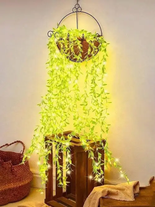 حبل زينة ورق شجر بإضاءة صفراء 😍❤️
