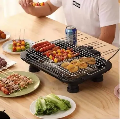 شواية كهربائية منزلية مسطحة 😍❤️ لتعملي أكلة المشاوي بدون نار ودخنة 😋 وشيعة استطاعة 1800 واط 💪 شبك مع حمالات لسهولة الفك والتنظيف ✨ مع صينية في الأسفل لتجميع الزفرة 🤗 الأبعاد { الطول 50 سم - العرض 30 سم } 🎗 توصيل ضمن الشام وشحن للمحافظات 🚌