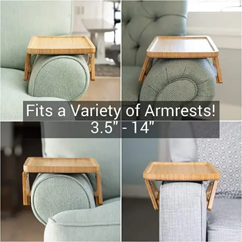 طاولة خشب جانبية للصوفا والكنبة 😍❤️تثبت على الأيدي الجانبية للصوفايات ✅لوضع الأغراض والأطعمة والمشروبات... 😌خامة تقيلة مصنوعة من خشب البامبو 😎مع مفاصل قابلة للتعديل لتثبت في مكانها 👌الأبعاد { الطول 38 - العرض 25 } سم 🎗توصيل ضمن الشام وشحن للمحافظات 🚌