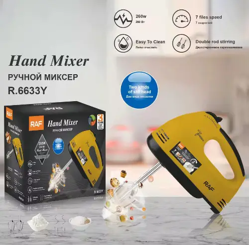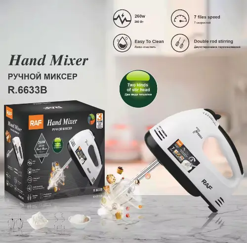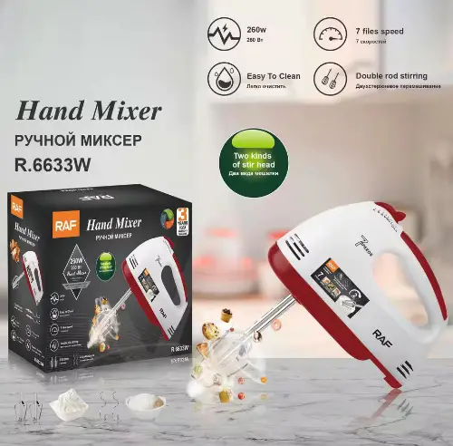 خفاقة وعجانة ماركة RAF 🌟 مصنوعة من بلاستيك قوي ومتين 🛠️ ⚡ قوة محرك 280 واط لأداء فعّال وسريع 🥄 يأتي معها: ✔️ مضربان للخفق ✔️ مضربان للعجن 🎛️ تحكم بـ 7 مستويات سرعة لتلبية جميع احتياجاتك في المطبخ 🍳 مثالية لتحضير العجائن، الكيك، الكريمة، والبيض بسهولة وسرعة 🚚 توصيل ضمن الشام 📦 شحن لجميع المحافظات 🌐 السعر 125000