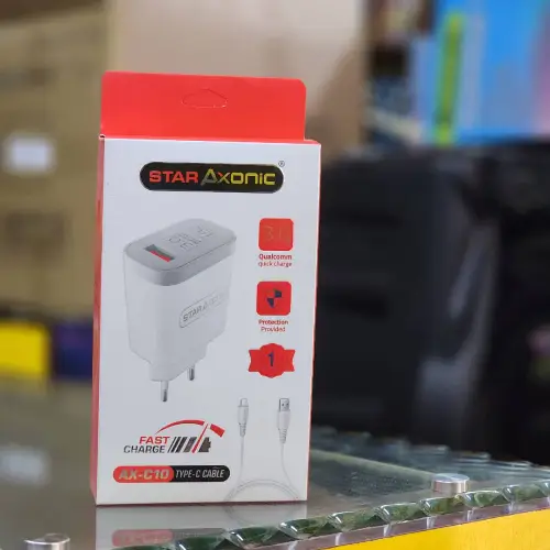 شاحن AX-C10 من شركة Star Axonic =•=•=•=•=•=•=•=•= 🚩رأسية شحن بقوة 18w/3A 🚩كابل للشحن ونقل البيانات Type-c to 🚩مخرج شحن USB