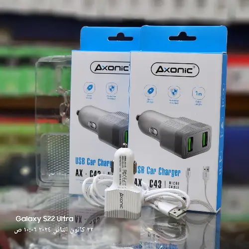 شاحن AX-C43 من شركة Star Axonic =•=•=•=•=•=•=•=•= 🚩رأسية شحن بقوة 2.4A 🚩كابل للشحن ونقل البيانات 🚩مخرج شحن USB × 2