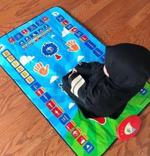 سجادة الصلاة التعليمية 😍❤️ ⭐️ تعليم الأطفال الصلاة من خلال وسيلة مرحة وسهلة وتفاعلية ⭐️ 36 زراً تفاعلياً حساساً يعمل باللمس ⭐️ التحدث بـ 7 لغات: العربية - الإنجليزية - الفرنسية - الأوردية - الماليزية - التركية - الإندونيسية ⭐️ تعليم: الوضوء - الآذان - مواقيت الصلاة - أوضاع الصلاة - تلاوة بعض السور والأدعية ⭐️ كتيب تدريبات للصلاة من 12 صفحة ⭐️ مادة مقاومة للماء ⭐️ مادة مقاومة للحريق ⭐️ نظام لفصل الطاقة تلقائياً ⭐️ قابلة للطي - حجم قابل للتعديل ⭐️ تعمل باستخدام 3 بطاريات AA 🔋 توصيل ضمن الشام وشحن للمحافظات 🚌