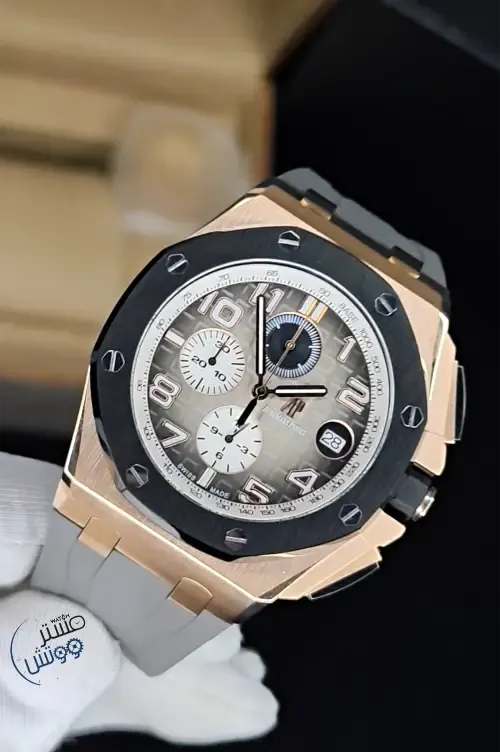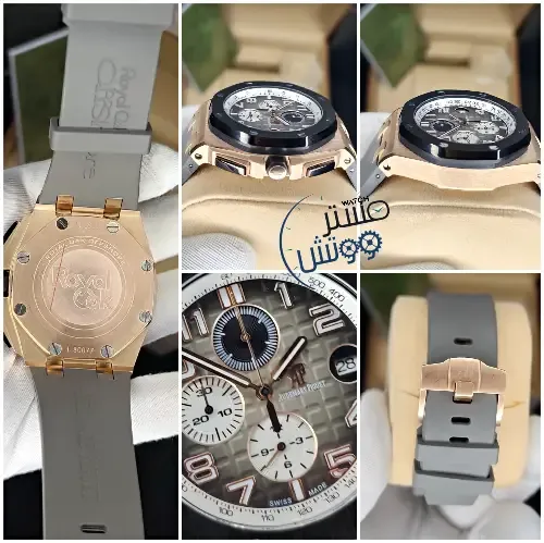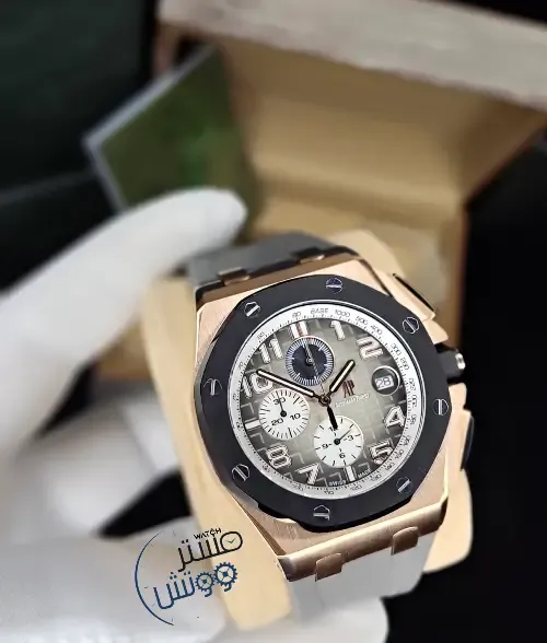 يسحرك الجمال المختبئ بتفاصيلها وتناغم ألوانها مما ينتج عنها لوحة فنية رائعة من أوديمار بيغيه off shore 🩶 المطلية بالذهب الوردي ⏱كوبي 1 A.A.A ⚙️ماكينة كوارتز كرونوغراف كامل مايوتا يابانية الصنع فائقة الدقة مع عداد للشهر و عداد رياضي لقرائة الوقت المنقضي بالدقائق و الساعات 💎عدسة من زفير الكريستال المقاوم للخدش وكستك من الرابر الفاخر 📐مطابقة لابعاد ووزن واختام الاورجينال مرفقة بالعلبة والملحقات الاساسية 🥇متوفرة الان ▪️كفالة لمدة سنة ▪️ للطلب والاستفسار اتصال او واتساب:0988644509