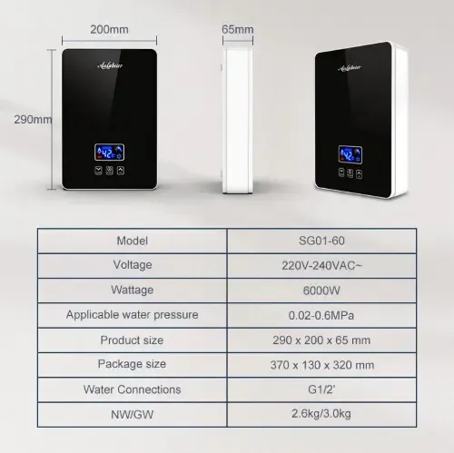 سخان مياه فوري – ماء ساخن خلال 30 ثانية ⏱️ بدون خزان – تدفق مباشر مناسب للحمام 🚿 استطاعة 3500 واط (220V) أو 48V مع إنفرتر 6000 واط 🔌⚡ درجة حرارة قابلة للضبط: 42–52°م 🌡️ تشغيل فوري طالما الكهرباء متوفرة – لا تأخير 🏠 تصميم آمن ومضمون – عزل حراري وحماية من السخونة الزائدة 🛡️ مناسب للاستخدام العائلي اليومي في الشتاء ❄️ توصيل ضمن دمشق وشحن لكافة المحافظات 🚚 السعر 500000