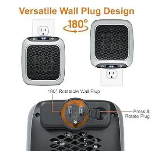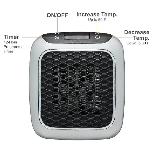 مقاسات صغيرة: 5.53" ارتفاع × 4.93" عرض × 3.51" عمق 📏 يعمل مباشرة من مقبس الحائط، لا يحتاج لأسلاك أو توصيلات ⚡ قوة 800 واط بتقنية السيراميك للتسخين السريع والفعال 🔥 يُدفئ غرفتك خلال ثوانٍ، مثالي للمكتب أو السرير أو المعيشة 🛋️ يمكن ضبط درجة الحرارة بين 60°F - 90°F بسهولة 🌡️ مزود بوظيفة مؤقت تلقائي من 1 إلى 12 ساعة ⏳ هادئ جداً، لا يسبب إزعاجاً أثناء الاستخدام 🤫 محمول وخفيف، يمكنك نقله لأي مكان في المنزل أو العمل 🎒 معتمد من ETI لضمان السلامة والأداء الموثوق ✅ توصيل ضمن الشام وشحن للمحافظات 🚚 السعر 200000