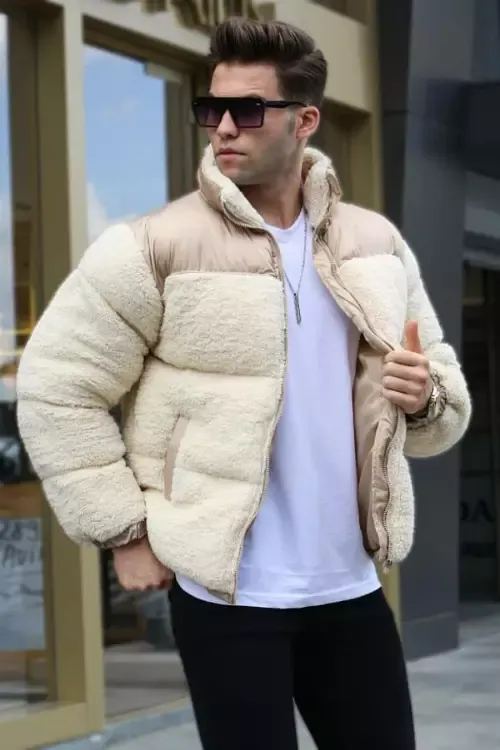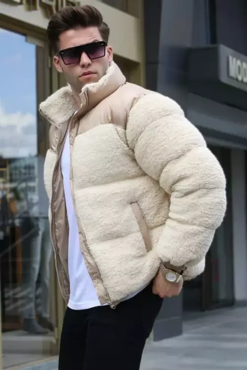 جاكيت فرو اجنبي ثقيل مستورد محشي دكرون3سم مطعم براشوت ع الصدر مبطن ساتان 🌸🫶🏻 بيج /فرو اوف وايت مقاسات M. L. Xl واتس 0959199808 واتس 0959199808