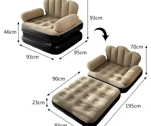 💪 كرسي نفخ وسرير 2 بـ 1 💎💨 مزود بمنفاخ سهل الاستخدام🎯 المميزات:✅ تصميم 2 في 1 عملي✅ سهل الحمل والتخزين✅ مقاوم ومتين✅ استخدام مريح في أي مكان📏 الأبعاد:🔹 عند الطي: 93 × 95 × 93 سم🔹 عند الفرد: 70 × 93 × 193 سم🎨 الألوان المتوفرة: | 🌊 أزرق - بني 🚚 توصيل داخل الشام + شحن للمحافظات السعر 350000