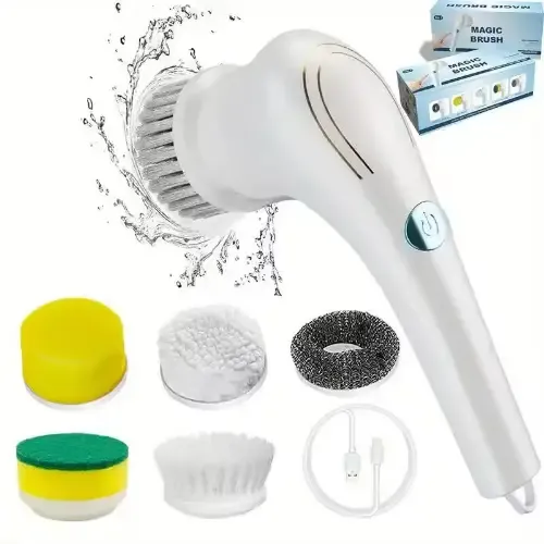فرشاية التنظيف MAGIC BRUSH 😍❤️ تعمل على الشحن 🔋 بدون الحاجة للكهرباء🤗 مزودة بـ 5 رؤوس متعددة الاستخدامات 👌 1⃣ سيفة خشنة للتنظيف العميق 2⃣ فرشاية لإزالة الأوساخ والدهون العالقة 3⃣ إسفنجة ناعمة لتنظيف السطوح القابلة للخدش 4⃣ إسفنجة خشنة لتنظيف الصحون والأطباق 4⃣ غطاء ناعم لتلميع الزجاج والسيراميك... توصيل ضمن الشام وشحن للمحافظات 🚌